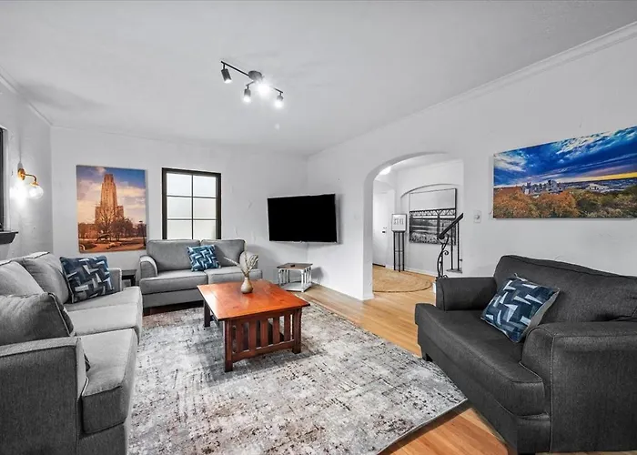 The 4-bedroom The Walnut Suites - The Family Suite Pittsburgh villa provides easy access to various city attractions, such as Kards Unlimited, situated just 6 minutes' walk away. Providing guests with Wi-Fi and a car park, this 4-bathroom holiday home is 2.2 miles from The Clemente Museum.